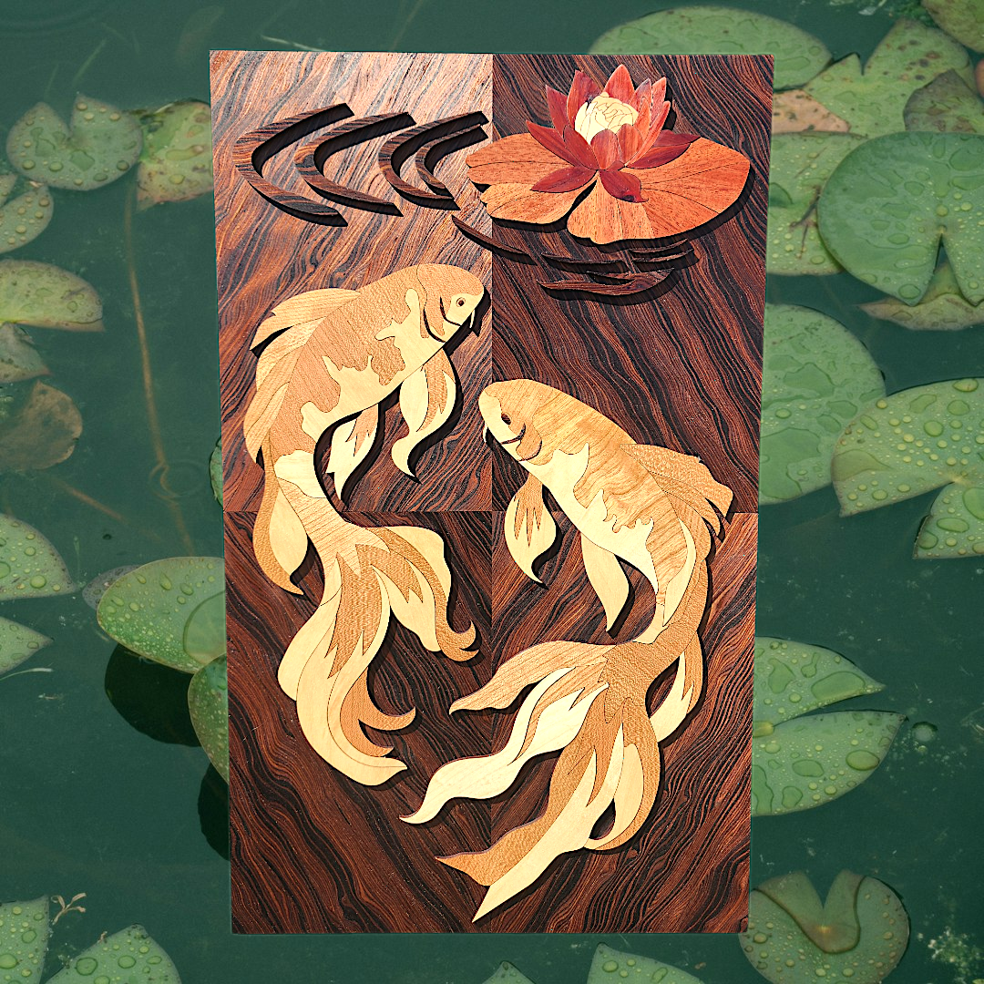 Wooden Inlay Koi Fish